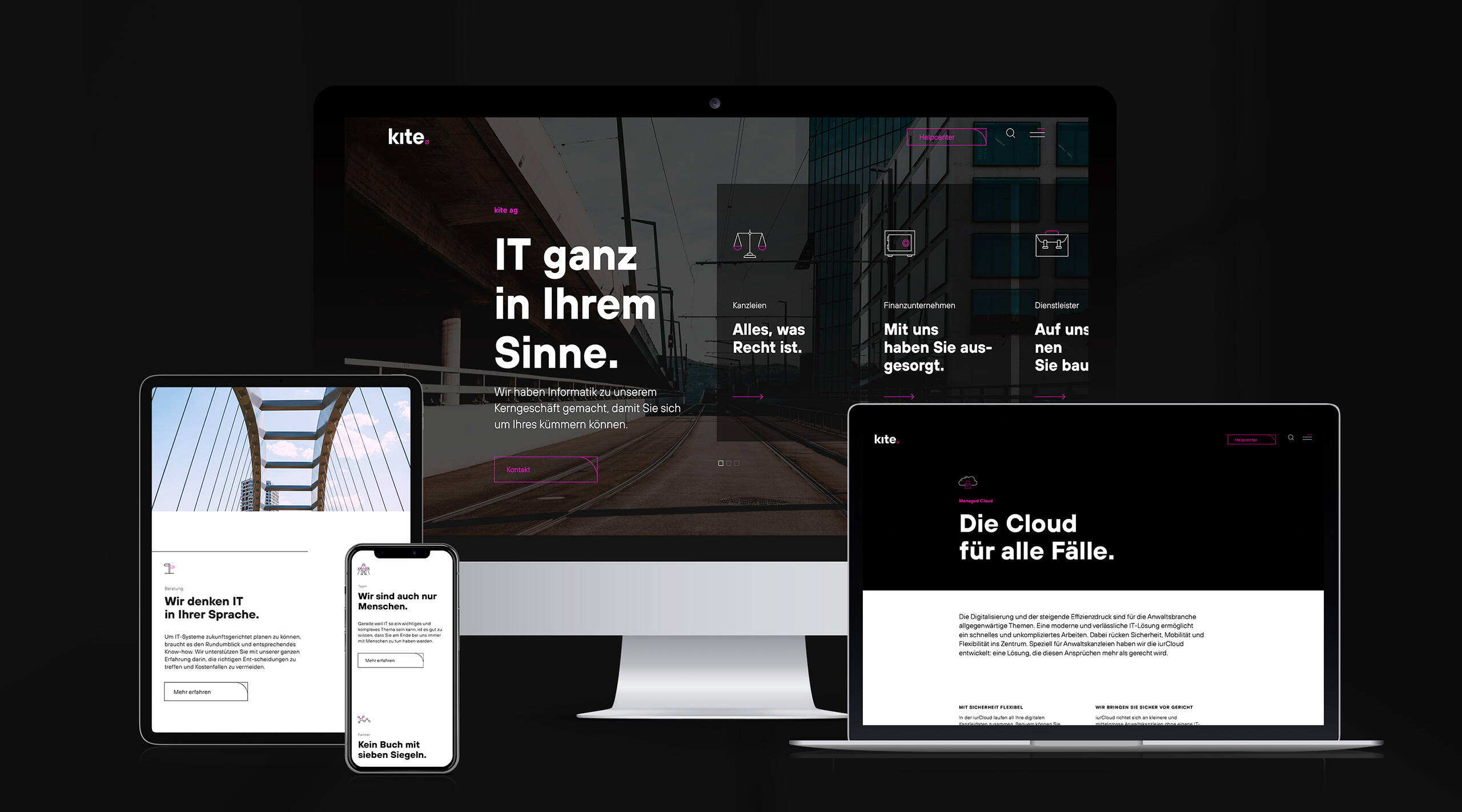 Das neu entwickelte Corporate Design, das Textkonzept sowie eine moderne Website bringen all dies zusammen und das Angebot von KITE auf den Punkt.