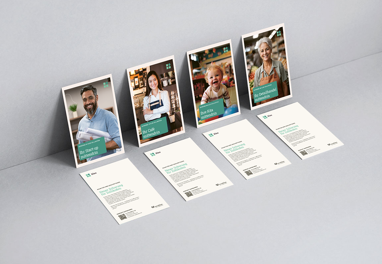 Den ersten Spatenstich in der Vermarktung des Neubauprojekts machten wir mit der Namensfindung und der Erarbeitung eines passenden Corporate Designs. «Klee» vereint vier unterschiedliche Wohn- und Arbeitsstile, symbolisiert durch vier abstrahierte Kleeblätter.