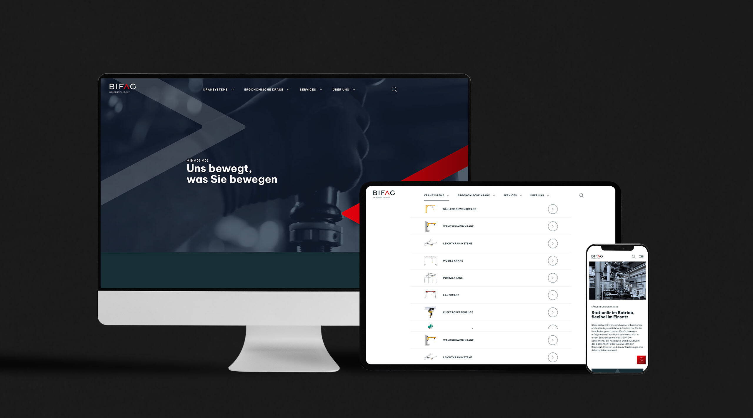 Auf Basis dieser Erkenntnisse entwickelten wir die Struktur und das Design der neuen Website. Durch einen eigenen Bildstil verliehen wir BIFAG noch mehr Charakter, der für Wiedererkennung sorgt. Das Ergebnis: ein moderner und stimmiger Auftritt, der die Kompetenz des Unternehmens nach aussen transportiert.