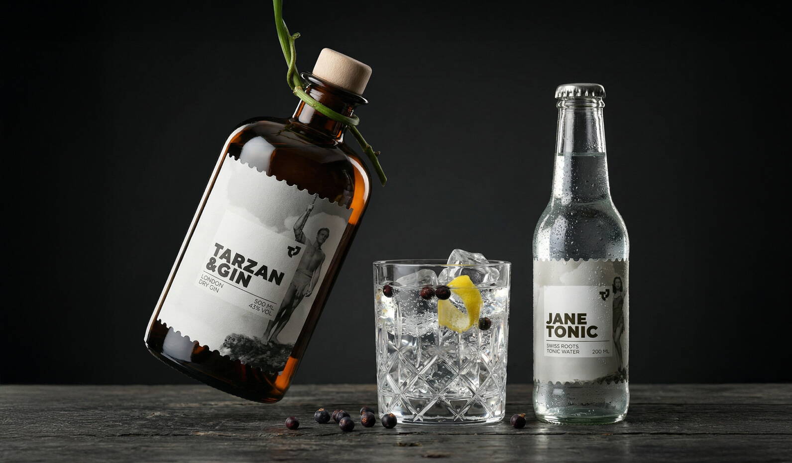 Was literally als Schnaps-Idee begann, wurde schnell zu einem echten Projekt: Tarzan & Jane, ein perfekt abgestimmtes Gin-&-Tonic-Duo inklusive Konzept, Branding und Packaging.